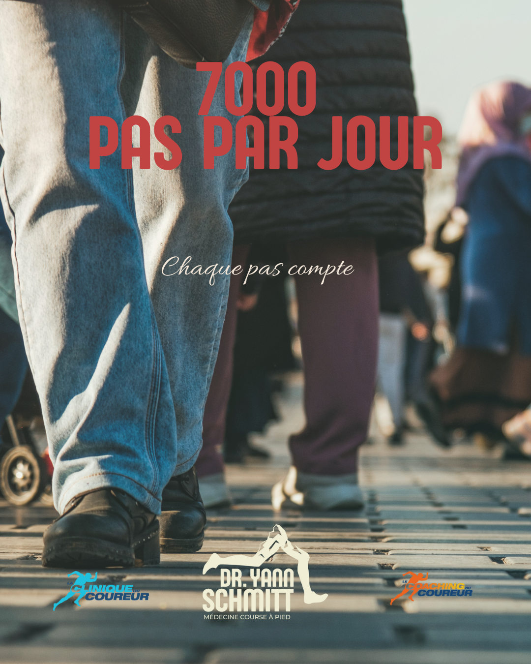 • 7 000 pas/j = chiffre clé, bénéfices majeurs.